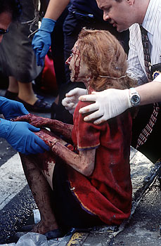 ![]() Some people fleeing the carnage of the collapsed buildings plunged their heads into city fountains, seeking relief from burning eyes and nostrils and blocked sinuses caused by dust and smoke. Stan Honda - AFP |