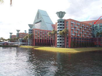This is the back of the Dolphin hotel, which is the primary conference hotel. My room windows is indicated with the red arrow.