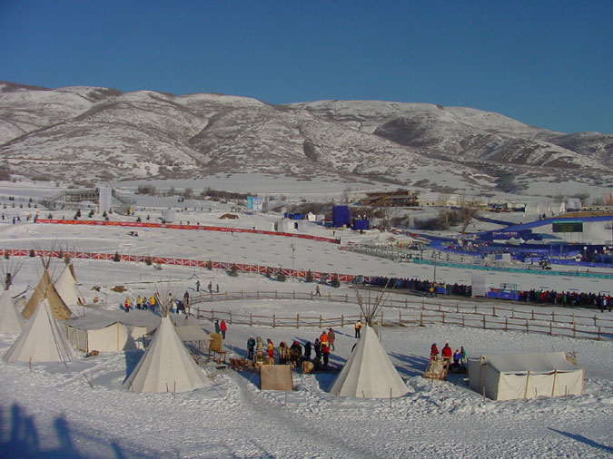 This shot shows the hills to the left of the bleachers. The Indian village in the foreground was a nice touch.